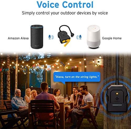 Dual Outlet Design: Enjoy customizable control over each individual socket through the VeSync app. Its power rating of 15A/1800W means 2 appliances can be used at once—ideal for holiday string lights, fountains, pool pumps, and more