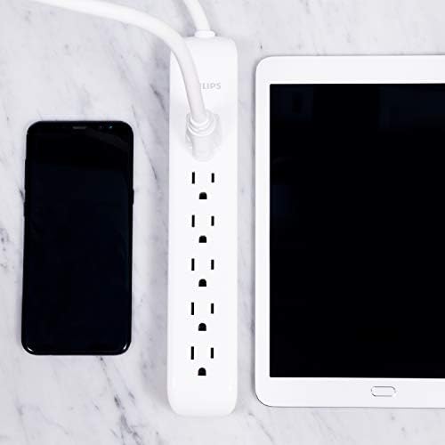 Ensure the safety of your connected devices with a Philips 6-Outlet Surge Protector. Featuring six grounded AC outlets and 720 Joules of protection, the surge protector transforms your regular outlet into a safe, organized powering station. The surge protector also includes automatic shutdown technology, a built-in function that stops power to your devices once surge protection has expired. The surge protector comes with a 4ft. power cord connected to a flat plug, allowing the surge protector to easily plug in behind desks, sofas and other furniture. The surge protector is the perfect addition to a home office, entertainment center or workspace. Protect and power six devices at once with a Philips 6-Outlet Surge Protector.