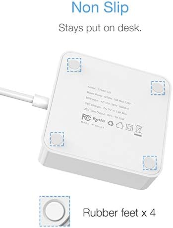 Lies flat and Stays Put: The power cable on this strip is flexible enough to let it settle in place on the desk, and the 4 rubber feet on the bottom keep from slipping and sliding