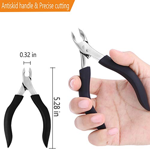 Quantity of tools for pedicure:Included 1*Toe Nail Clipper , 1*Leather CaseColor of precision toenail clipper:black handle and silver stainless steelMateialof ingrown toenail clip: rubber handle and surgical grade stainless steelHandle Lengh: about 3.9 inOpening Width: 0~0.32 inTotal Lengh: about 5.28 inPackage of Ingrown Toenails Treatment: perfect clear bag