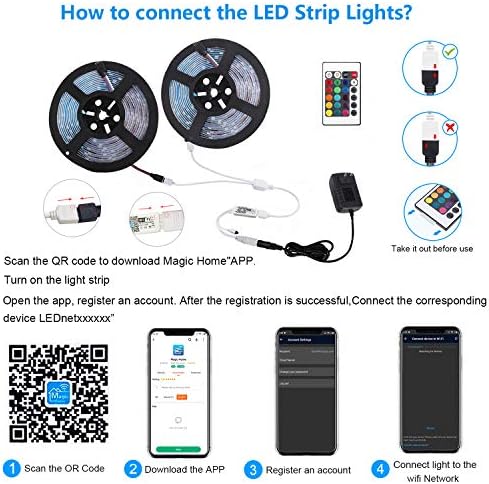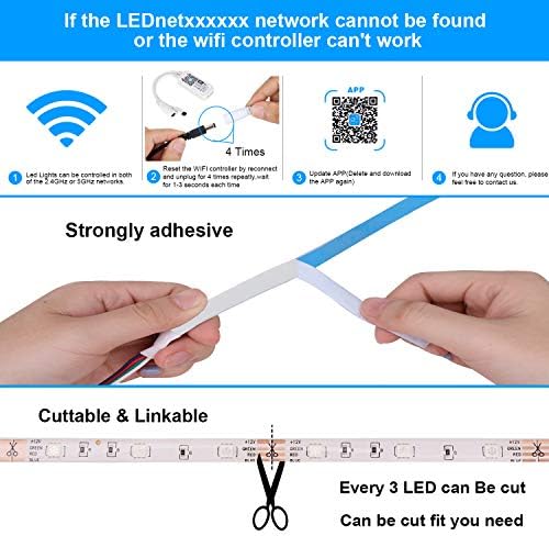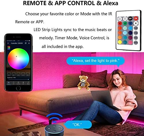 【Voice Control work with Alexa】: Alexa led light strip can free your hands to control the led lights.The led light strips can be controlled by your voice commands such as turn your lights on and off, set color, make them brighter. Smart led strip lights can be also controlled by the IR remote.[NOT SUPPORT 5GHz WiFi]