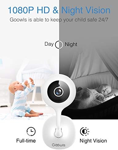 [Night Vision & 1080P Wide Angle Lens] – Goowls Home Camera is equipped with a 110° Wide Angle Lens, and can provide you with real 1080P high-definition video quality. It supports professional IR Night Vision, which has IR cut filter with Auto Switch, 6 IR LED lights, the distance up to 32ft, keeps an eye on your home 24/7.
