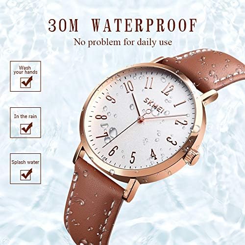 ★Easy to Read: Round glass dial window with a large numeral and clear visible hour and minute scale make the watch easy to read. This watch is medium and lightweight, the soft leather band can provide strong using and comfortable wearing experience
