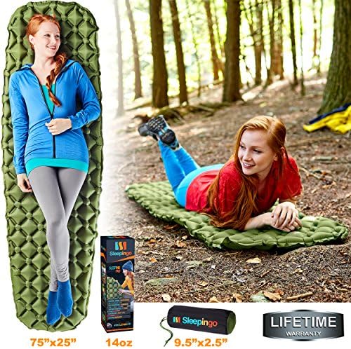 THIS TOUGH DURABLE LARGE COMFY SLEEPING PAD FEATURES A LIFETIME WARRANTY! – Economically and practically efficient With an impressive size blown up of 75 X 23 this camping mattress pad, will give you the comfort you need.
