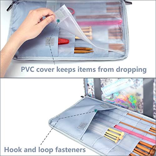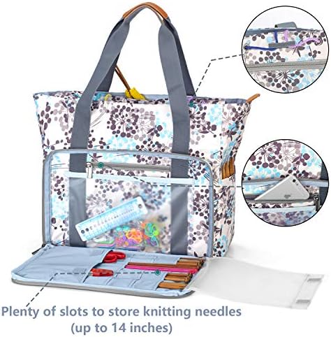 MULTIPLE POCKETS: Additional compartments designed to hold crochet hooks, knitting needles(Up to 14”) and knitting accessories. Keep all you need in one place and easy access.