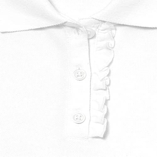 Styled with short sleeves, shirring at the shoulder, ruffle button placket and tagless label