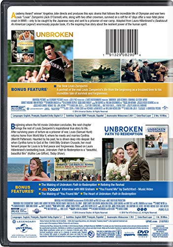 Unbroken: Academy Award® winner Angelina Jolie directs and produces this epic drama that follows the incredible life of Olympian and war hero Louis “Louie” Zamperini (Jack O’Connell) who, along with two other crewmen, survived on a raft for 47 days after a near-fatal plane crash in WWII—only to be caught by the Japanese navy and sent to a prisoner-of-war camp. Adapted from Laura Hillenbrand’s (Seabiscuit: An American Legend) enormously popular book, it’s the inspiring true story about the resilient power of the human spirit. Unbroken: Path to Redemption: Beginning where the hit movie Unbroken concludes, the next chapter brings the rest of Louis Zamperini’s inspirational true story to life. After surviving years of torture as a prisoner of war, Louis (Samuel Hunt) returns home from World War II, where he meets and marries Cynthia (Merritt Patterson). Haunted by his past, he is driven deep into despair. But when Cynthia turns to God at the 1949 Billy Graham Crusade, her most fervent prayer for Louis is to find peace and forgiveness. Based on Laura Hillenbrand’s bestselling book, Unbroken: Path to Redemption is a “beautiful, beautiful film” (Kathie Lee Gifford, Today Show).