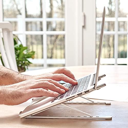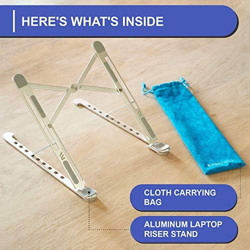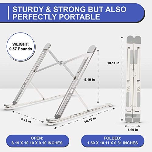 It’s Strong & Tough, But Also Very Portable: The laptop riser adjustable height can hold 10-16” laptops, books, and tablets up to 88 pounds; When not in use or you’re on the go, it folds into a portable 1.69 x 10.11 x 0.31 inch size, so you can toss it in your bag, purse, or included carry bag .