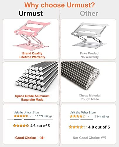 Durable and Ventilation Hollow Design: With the specially processed aluminum alloy material, Urmust Notebook stand can be delicate feel, easy to clean, rust-proof; scratch-proof; Metal heat conduction alloy and ventilation hollow design, to help computer on cooling, prevent overheating.