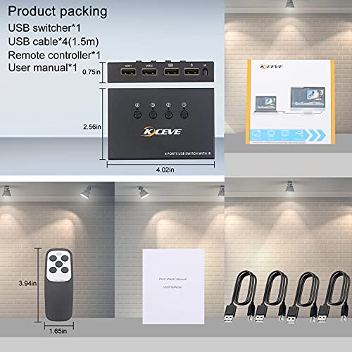 The switcher can realize 4 computers to share 4 USB peripheral devices, and freely switch between 4 computers by pressing the button or the remote control,It’s great for home use when you have multiple PCs or laptops,Improve work efficiency.