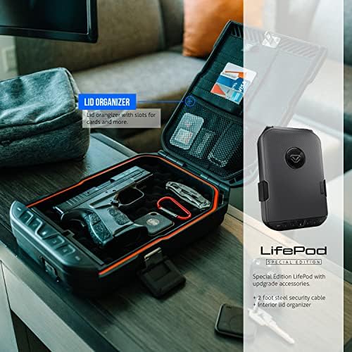 SPECIAL EDITION LIFEPOD with UPGRADED ACCESSORIES. 2 foot steel security cable + interior lid organizer. PORTABLE CASE with a secure BUILT-IN LOCK SYSTEM. Integrating precision engineered safe technology and anti-impact latch design, LifePod travel cases feature a built-in lock allowing you to quickly lock LifePod for added security when needed. Easily portable to travel in your car, the office, on a boat, backpacks, and in luggage. Meets TSA guidelines.