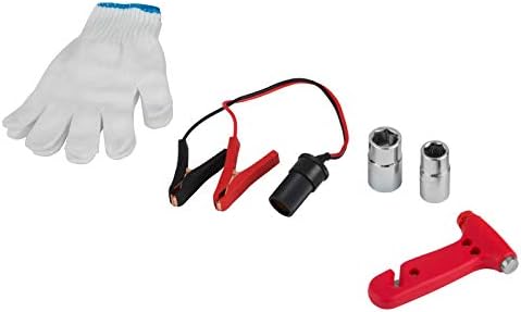 It can function as a car jack, an air pump, and a LED flashlight. It matches the complete small tools, safety hammer, gloves, BMC packing, engineering ABS shell.