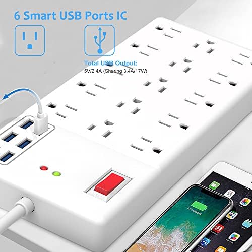 【Smart USB Charging Station】The USB outlet strip combined 3.4 Amp USB ports quickly charge your electronics, each USB port featuring 2.4A Max output