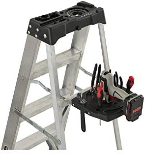 The step ladder is fully loaded and equipped with a molded top that includes a recessed tray to hold all your tools
