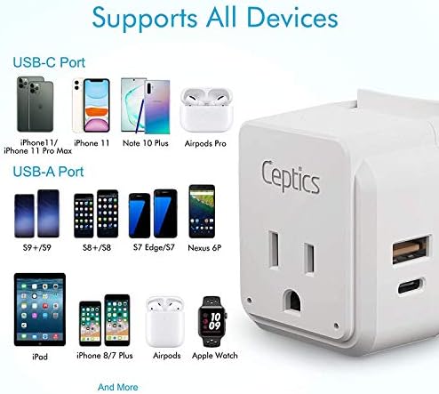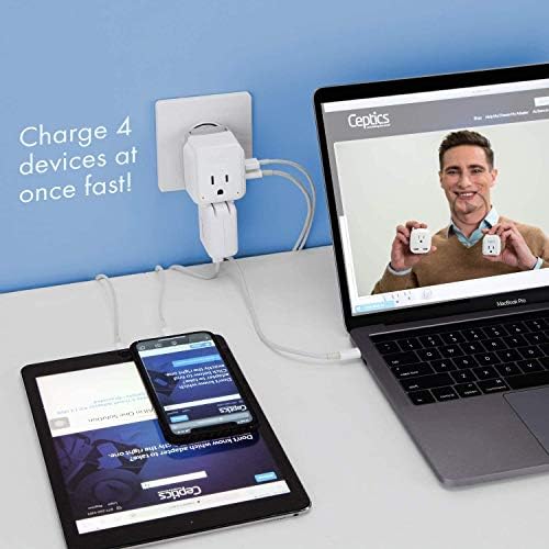 [Charge 4 devices at once] 2 USA input 1x USB & 1x USB-C (total max 3 1a) perfect for charging cell phone camera laptop Tablets iPads iPhones Kindle chargers CPAP and power bank & more