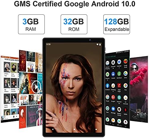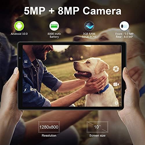 【Slim Design, Large Storage】The Android 10.0 Tablet has a simple but also not simple design. The fashion, line-clear and slim metal body look more like artwork. Even so, it still has built-in 32GB storage and supports MicroSD Expandable to 128GB storage(not includ SD card). You can download and keep your favorite books, songs, photos, movies, games and everything you like