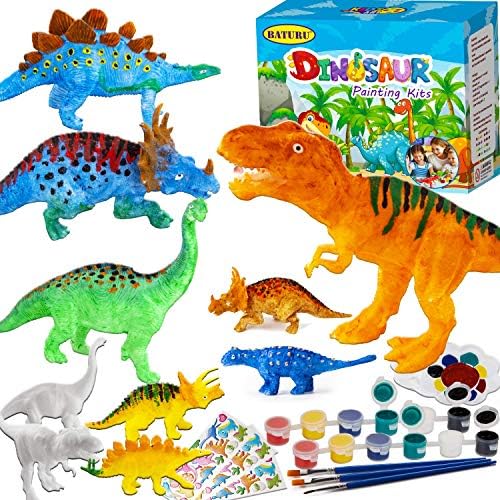 The dinosaur painting kits for kids are made of sturdy but soft plastic, you can drop the dinosaur toys and don’t have to worry about them breaking!