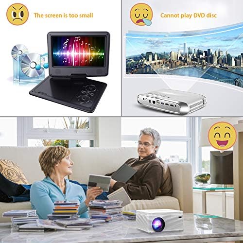 【Built in DVD PLAYER】 2020 upgraded LED projector With Built in DVD player, You can play the disc without additional DVD player. Not recommend for PPT or office presentation.