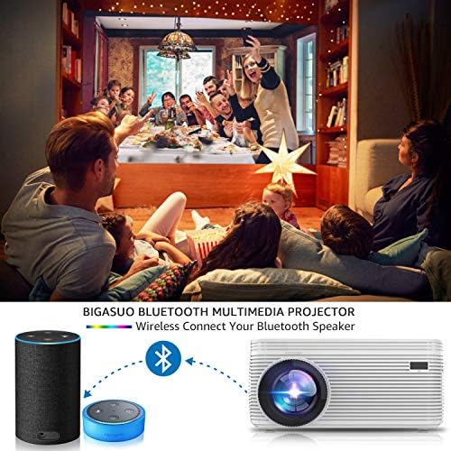 BIGASUO Bluetooth Projector enables to connect Laptop, PCs, TV Box, Xbox, Amazon Fire TV Stick, Roku, Chrome Book, Tablets, Blue-ray DVD player, SD Card, USB Flash Drive, Media players, iPad, iPhone, Android Smartphones.