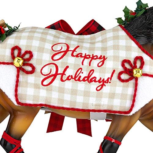2020 Breyer Holiday Horse – Yuletide Greetings is adorned with rustic appeal. His plaid blanket features “Happy Holidays” embroidered on one side, and a large buffalo plaid bow on the other. Ribbons, burlap, and rope detailing complete his look, which exudes modern country charm. A timeless holiday gift, Yuletide Greetings features “Happy Holidays 2020” on his belly.