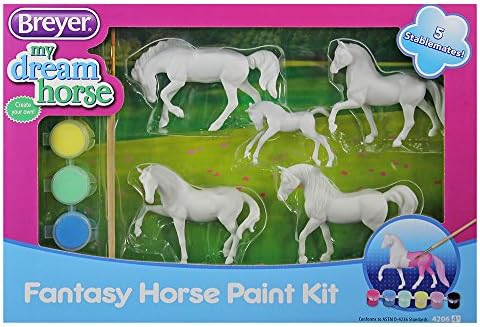 Includes: 5 Stablemates horses, 6 fantasy color paint pots, 1 paintbrush, 1 instruction booklet, 1 sheet of pop-out accessories