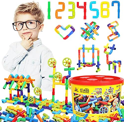 Package includes 250 PCS interlocking building toys include T-Joints, various pipes tubes pieces, and wheels. Easily build rectangles or other geometric shapes, enhance hand-eye coordination, color recognition, matching, cognitive ability, creativity, and imagination.