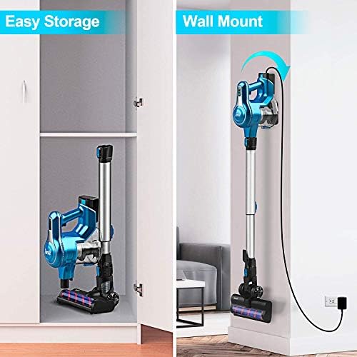 Compact design make it can be stored in the corner or cabinet. The convenient wall mount can hold the vacuum and battery charging. Keeps your home tidy and organized.