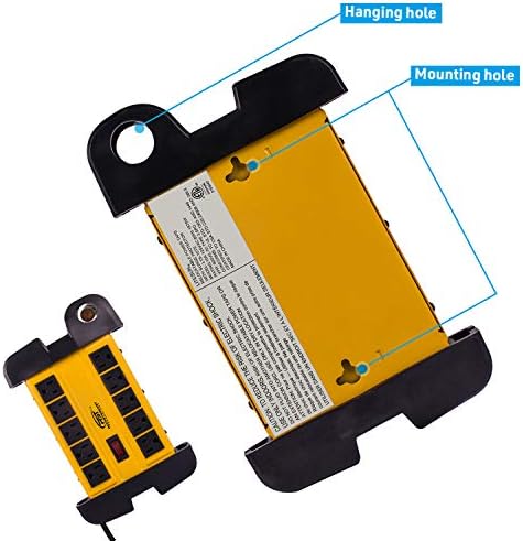 Rectangle Design can save room and easily plug in all your devices in workbench. Cord holder design can wrap 15 feet cord easily around the power strip , hanging hole can help with storage. Circuit breaker will trip protecting your devices and reducing fire risk