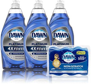 If you’re looking for the PERFECT PAIR, look no further. Get your ultimate clean and be the kitchen hero with the Grease Cleaning power of Dawn dish soap paired with the Dawn Non-Scratch Scrubber Sponge. Dawn Ultra Platinum has 4X MORE Grease Cleaning Power per drop, so you can get through more dishes with less. The Dawn Non-Scratch Scrubber Sponge has a scrubber side that easily takes off grease and baked-on messes, while the absorbant cellulose side is gentle yet mighty to get dishes sparkling clean. Cleaning ingredients per drop vs. non-ultra Dawn