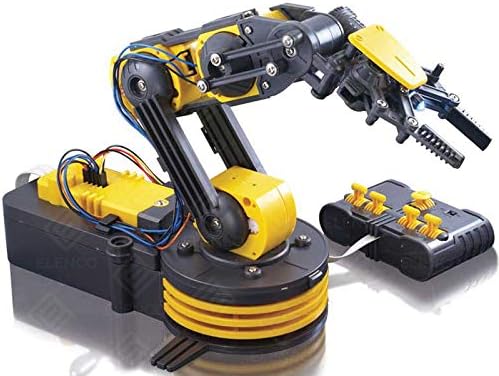 “Robotic Arm Wired Controlled allows young engineers to learn the basics of robotic technology! The innovative robotic arm has an extensive range of motion through all pivot points. It’s an introduction to Robotics and Mechanical Engineering that will excite young and old engineers. This STEM robot has five motors that power five joints for optimal control and movement. Develop problem-solving skills while assembling and while having fun! Lifting capacity: 3.5oz (100g). Horizontal reach 12.6in. (320mm). Vertical reach 14.96 in. (380mm).Base rotation range 270°. Base motion range 180°.Elbow range 300°. Wrist motion range 120°.4 D batteries required, not included. Tools that might be needed: diagonal clippers, a screw driver, safety goggles. Elenco Teach products are based on STEM activities (Science, Technology, Engineering, Math) to teach and encourage kids in their development, all while having fun! Perfect for future engineers ages 12+.”