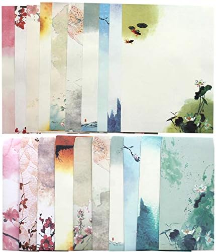 [Package Includes]:40 Chinese style stationery writing letter paper along with 20 ink painting design envelopes;
