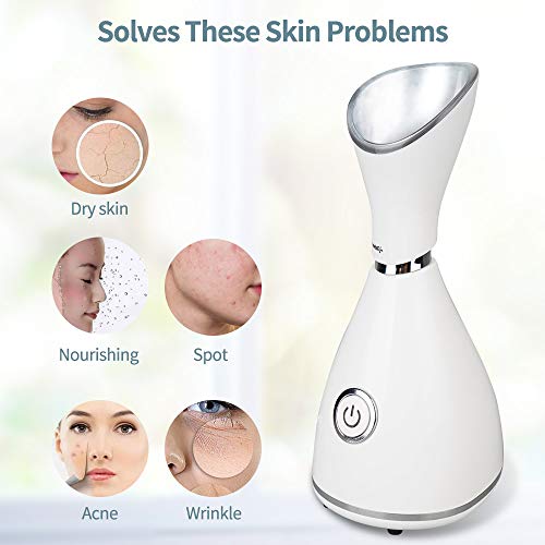 ๐Ÿ’—Reduce Skin Problems:๐Ÿ’— Our facial steamer can reduces acne and blackheads, weakens pigmented spots, removes congestion in the sinuses. Promoting the skin metabolism, absorption of skin care products, activates cell vitality, and nourishes skin care.
