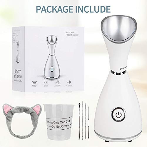 Facial Steamer, DIOZO 10X Penetration 70ML Nano Ionic Facial Steamer Warm Mist Face Steamer for Women Moisturizing Cleansing Pores, With Free 4 Pieces Blackhead Remover Kit and Hair Band