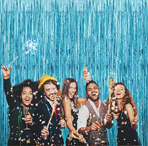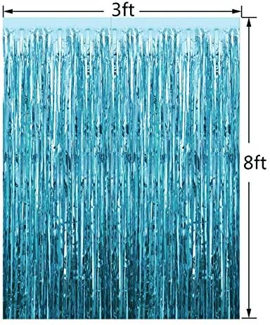 Light Blue Metallic Tinsel Foil Fringes Curtains.2Packs/SET,enough quantity for your party decoration and Save your money.Each pack Curtains size is 3ft x 8.3ft,enough length for decorate your party.