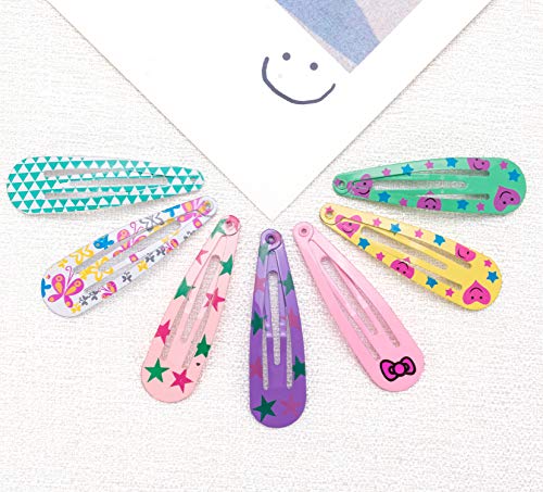 Color: 10 solid different colors; each color comes in 3 pairs; in total 60 pieces; colors include white, pink, hot pink, yellow, red, velvet, sky blue, purple, green and black (assorted) Pattern: 8 different patterns; each pattern comes in 2 pairs, in total 40 pieces; pattern styles feature stars, lovely bows, butterflies, hearts and mosaic triangles (assorted) Size: each clip is 2″ in length, 0.6″ in width Material: made of durable metal, are of high quality; thick color paint, do not fade easily or peel off Packing: come in 50 pairs in total in assorted colors in a pink zig bag Durability: each snap hair clip is handmade, hand picked, and checked to ensure its utmost durability Perfect for: they match most outfits for baby, girls, kids with their various colors and adorable patterns in all occasions, birthday parties, holidays, and daily wear