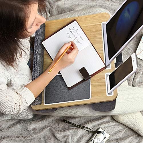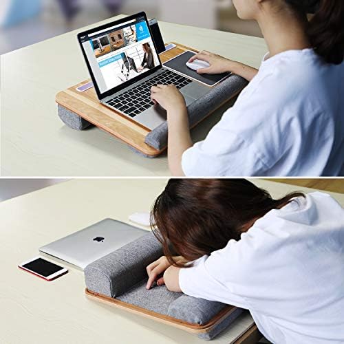 ✓ MULTIFUNCTIONAL LAP DESK – This HNLD3 lap desk is built with an environmentally friendly wooden panel and dual bolster cushions for comfort and support. It can be used while lying on your bed or sofa or while traveling. You may use it as a laptop stand, work stand, reading desk or for whatever situation you may need it