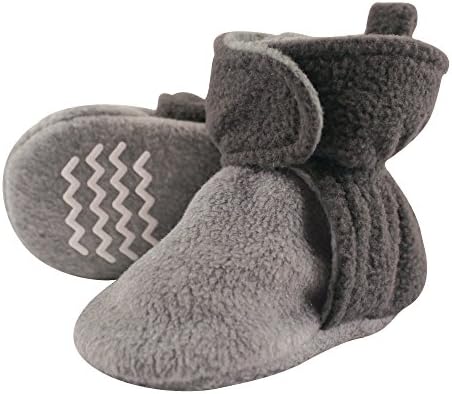 Hudson Baby fleece booties are comfortable, cozy baby booties made with fleece material that will keep your little one’s feet warm and comfortable. Our booties wrap around your baby’s foot and fasten in the front with a velcro closure, so they are easy to put on, fasten and stay on. Our fleece booties feature non-skid soles to prevent your baby from slipping and falling when they start to walk and run.