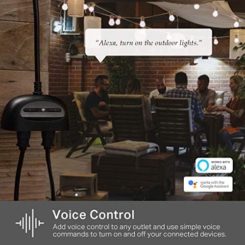 Double the outlets control 2 outdoor devices from anywhere together or individually, with one smart plug; Ideal for landscape lighting, swimming pool pumps, holiday lights, or other appliances