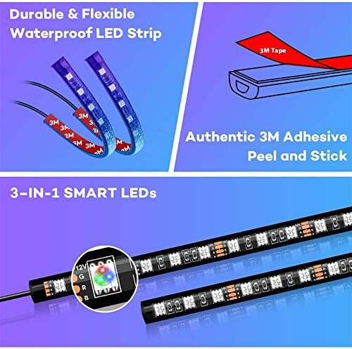 PREMIUM UPGRADED VERSION — This upgraded version of the interior car lights has 2 wires with 6 feet and 2 feet extra long wires to connect 4 strips. Such a user-friendly design makes it more concealed to be installed on the car, bringing more splendid visual effects.