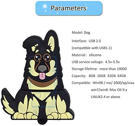 💖 【Adorable Memory Stick】: 1* 16GB dog character usb flash drive, comes with a little metal lanyard, so you can bring it as cute pendant on key-chain or backpack, good looking and handful