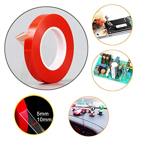 CONSTRUCTION: The red adhesive tape with strong PET adhesion on both sides. Strong transparent tape that is rated to hold 2-4 pounds of mass per square inch of double-sided tape; weather-proof adhesive empowers shop owners to have good bonding for repair and temporary projects making; safe adhesive tape enables phone store, electronic device repair center, artist, teacher, student, business owner to use for repair or handwork.