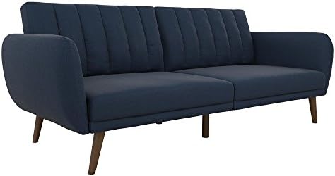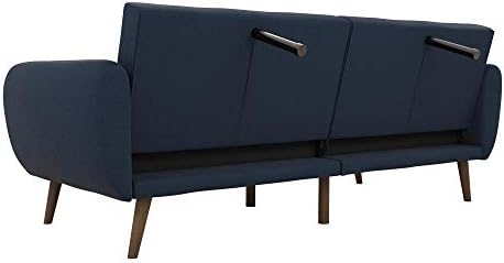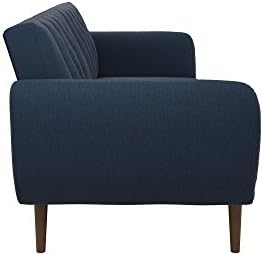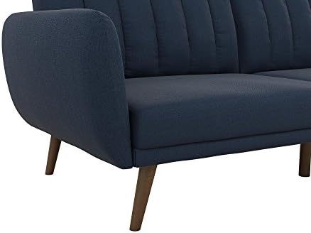 Be embraced by the comfortable cushioning of the Novogratz Brittany linen futon. With its ribbed tufted cushioned back, the Novogratz Brittany Linen futon gives your body all the support you need to sit and relax for hours. The combination of curved armrests and slanted legs work together to provide a unique rounded look that stands out. The linen upholstery adds another element of elegance, making this a perfect statement piece for any living space. It features comfortable polyester and foam filling with slanted oak colored wood legs.