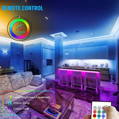 Led strip lights 16.4 ft : SMD 5050 LED, 24 key IR remote 16 color 4 DIY modes, colorful mood lighting