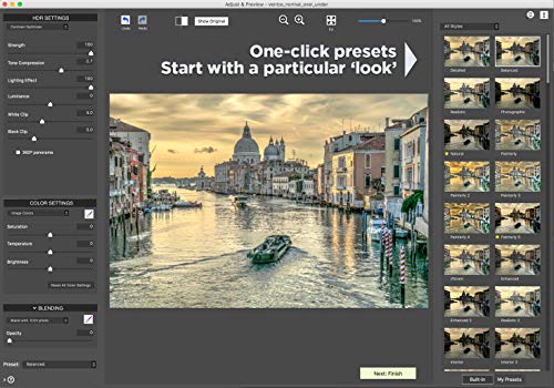 Photomatix Pro merges photographs taken at varying exposure levels into a single HDR image that reveals both highlight and shadow details, with options for automatically aligning hand-held photographs, removing ghosts, and reducing noise and chromatic aberrations. Users can then adjust the merged images by a range of options and settings to get the look they want — from natural-looking results to painterly, surreal or ultra-realistic images. The program also includes a plugin for Adobe Lightroom for users who want to integrate Photomatix Pro into their Lightroom workflow.