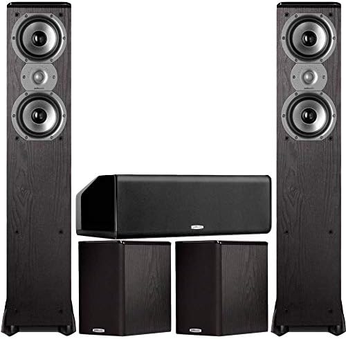 This Polk Audio 5.0 Home Theater Speaker bundle includes: TSi300 3-Way Tower Speaker with Two 5-1/4″ Drivers – Pair (Black) TSi100 2-Way Bookshelf Speaker with 5-1/4″ Driver – Pair (Black) CS10 Center Channel Speaker with Dual 5-1/4″ Drivers – Each (Black) TSi300 Tower Speakers It’s a stylish solution: Build the bookshelf style speaker into its own stand. The result is a smaller tower that takes up almost no floor space and saves you the hassle of speaker stands. In exchange you get solid efficiently stable footing and the enhanced performance of more enclosure space. Dynamics go beyond bookshelf with a wide soundstage and detailed imaging in small to mid-sized rooms. It’s the tower with the soul of a bookshelf and the performance of a monster! Features: Unlike other speakers in this price range TSi enclosures are constructed of extensively braced solid MDF with 3/4-inch baffles. This virtually eliminates internal resonances and damps energy-stealing vibrations for more efficient operation and more transparent sound. Polk’s proprietary patented Dynamic Balance technology allows the engineers to design out distortion-causing driver and system resonances so you only hear the good sounds. Klippel motor optimization uses laser measurement technology to ensure a smooth excursion path at either end of the volume spectrum for uniform performance at both low and high volumes. All Polk loudspeakers are timbre-matched within their series designed with the same components throughout to achieve seamless speaker-to-speaker blending effects in multi-channel systems. TSi100 Bookshelf Speakers It’s a stylish solution: Build the bookshelf style speaker into its own stand. The result is a smaller tower that takes up almost no floor space and saves you the hassle of speaker stands. In exchange you get solid efficiently stable footing and the enhanced performance of more enclosure space. Dynamics go beyond bookshelf with a wide soundstage and detailed imaging in s