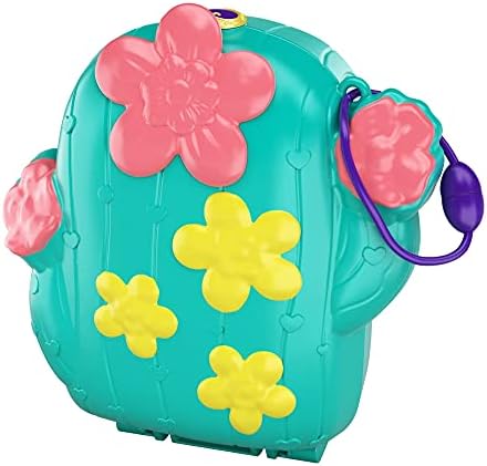 It’s time for tiny fun in the sun with Polly Pocket! Take this adorable Cactus-shaped Pocket World On-the-Go and have a fun-filled ranch adventure with micro Polly and Shani dolls and their 2 cute horse friends! Open the compact to explore and reveal these fun activities: a barn door opens so you can place a doll or horse in it; spin the barrel and Polly or Shani doll can ride around on the horse 360 degrees; the corral fence has a gate that opens; you can have fun with horse jumps (raise the gate a little higher for more challenging jumps); Polly or Shani dolls can fit in the hot air balloon for a ride (moves up and down); move the lizard to make the cacti move; and when it’s time to relax, the girls can sit on the bale of hay. Get along little partners! The Pocket World Cactus Cowgirl Ranch compact also comes with a strap so kids can wear it as a wristlet or purse! With Polly Stick technology, the micro dolls can stick anywhere on the compact. Place a sticker from the sticker sheet (included) on the compact and the dolls will stick to the sticker wherever placed. Compact is small enough to take anywhere, anytime for fun Polly Pocket adventures. Colors and decorations may vary. For ages 4 and up.