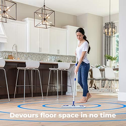 ♻️COVERS A-LOT OF AREA IN ONE SWEEP – With it’s large, 18 Inch base, it devours floor space in no time. Even better for quick and easy cleanup’s, makes mopping the floor a breeze whether you use the duster pad or the wet mop cleaners. Suitable as a hardwood, laminate, Vinyl or tile floor mop.