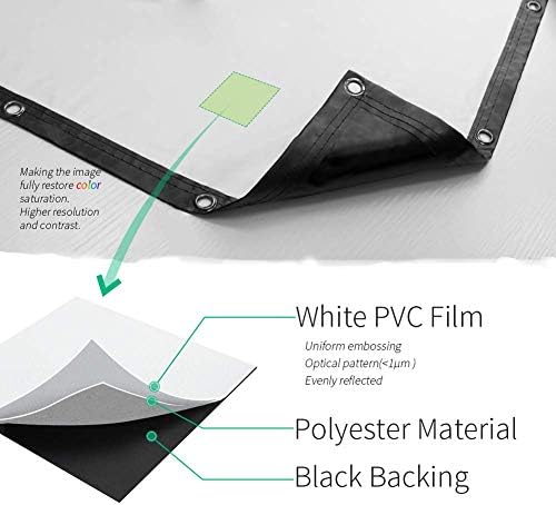 ✿Upgraded 3 Layers – The white surface layer has 1.1 projection gain effect, the nylon layer in the middle improves the overall softness of the movie image, and the black layer on the back completely blocks the light source and refuses light transmition. All is to make sure you enjoy the theater like image at home.