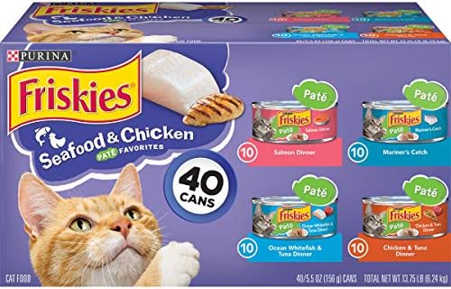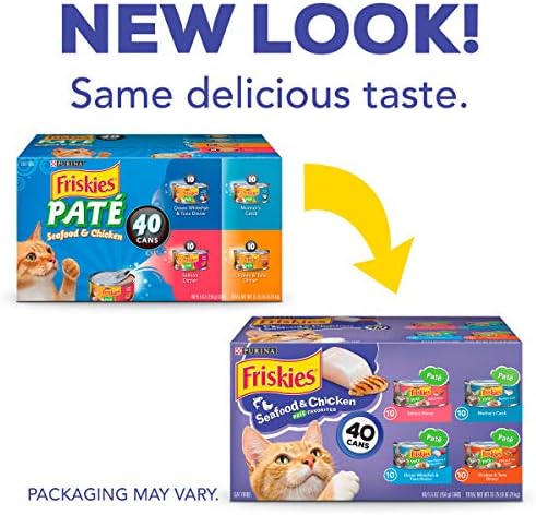 Deliver more of your cat’s favorite flavors to her dish with this Purina Friskies pate seafood and chicken wet cat food variety pack. Each recipe features a smooth pate texture that she can happily nibble at mealtime. Savory flavors combine to create delicious mealtime options she can’t resist, and the enticing aroma captures her attention every time you open a can. These wet cat food entrees are made with high quality ingredients to give you something to feel good about serving to her. Your curious cat gets essential vitamins and minerals to help support her overall health and wellness, so she can poz and play her way through each day. With real poultry or seafood in each recipe, your feline friend gets the meals she loves in every serving. Show your cat you know what she likes when you fill your pantry shelves with this Purina Friskies wet cat food variety pack. For a tasty experience that delivers with each bite, order Purina Friskies wet cat food varieties.