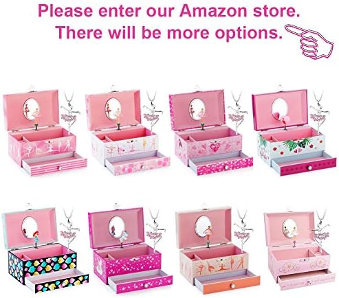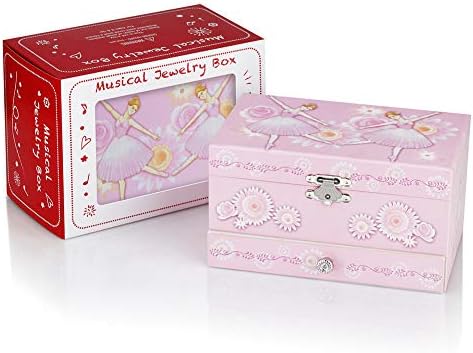 COMPARTMENTS & DRAWER: Ideal for storing girl’s cherished items including earrings, pins and small bracelets, Elegant and charming Ballerina merry-go-round, cozy velvet lining and mirror in top.